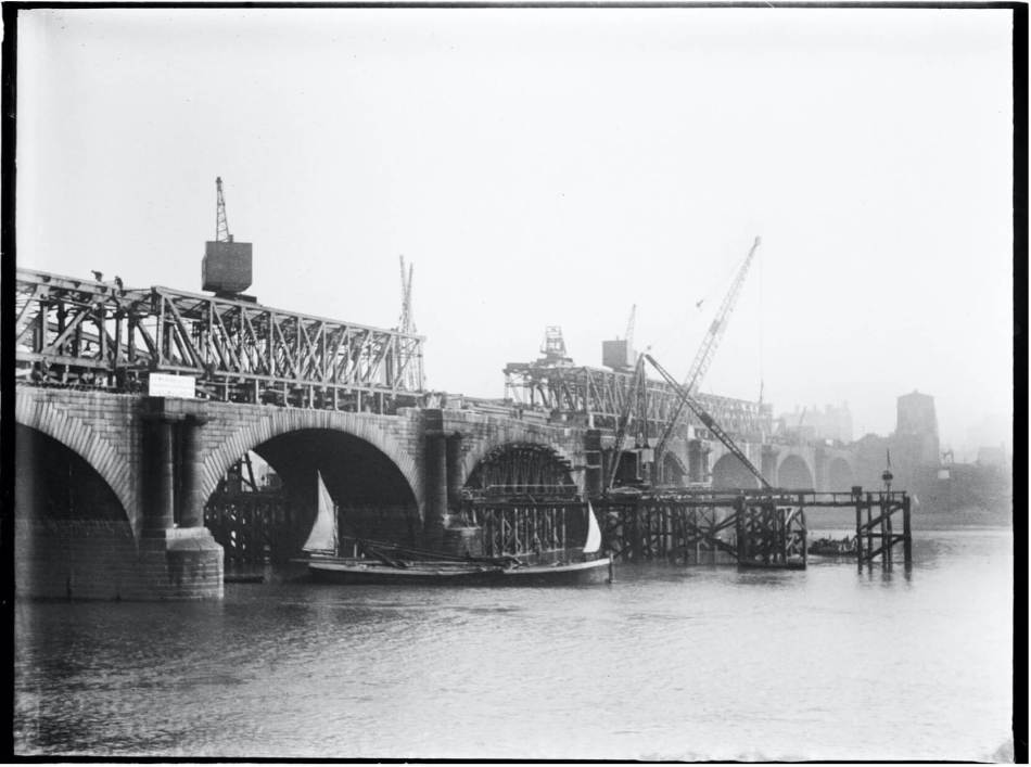 Construction of the new bridge began in 1937, but during the Second World War the workforce of 500 was reduced to 50. Heavy bombing during the Blitz (1940 to 1941) caused further disruption.