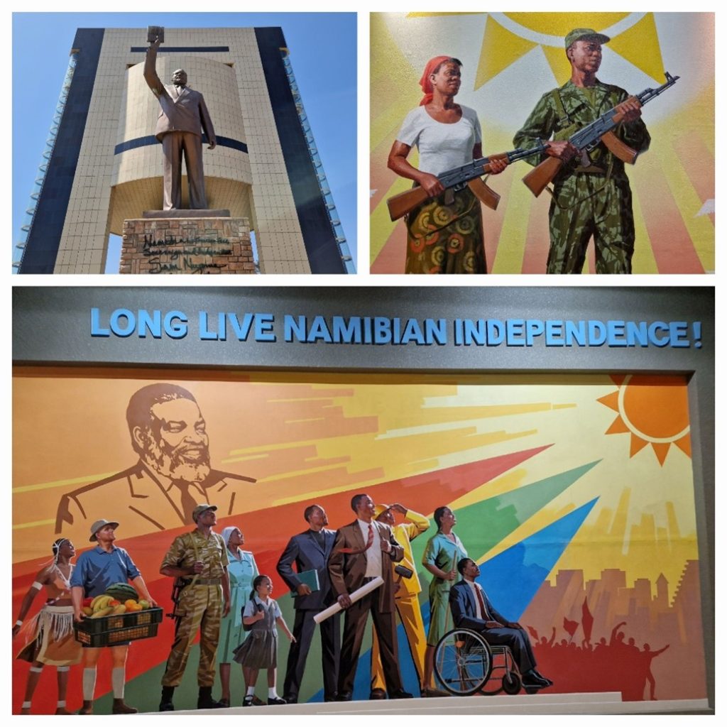 (Above left: IMM from outside including view of statue of President Sam Nujoma ©D. M. Natermann; above right: Male and female freedom fighters ©D. M. Natermann; below: Namibia’s diverse population post-independence – working towards a better future ©D. M. Natermann)