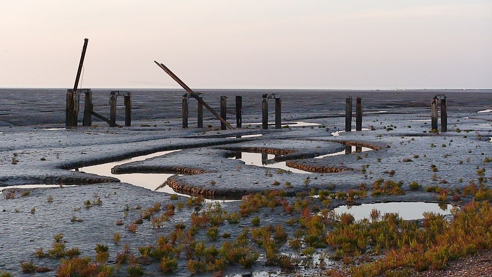 The Snettisham Jetty in the RSPB Bird Reserve, The Wash. WikiCommons.
